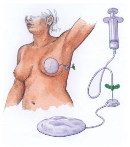 Avant la l’intervention de reconstruction mammaire par implants, des expandeurs de tissus temporaires sont utilisés afin que les implants mammaires puissent être convenablement insérer.